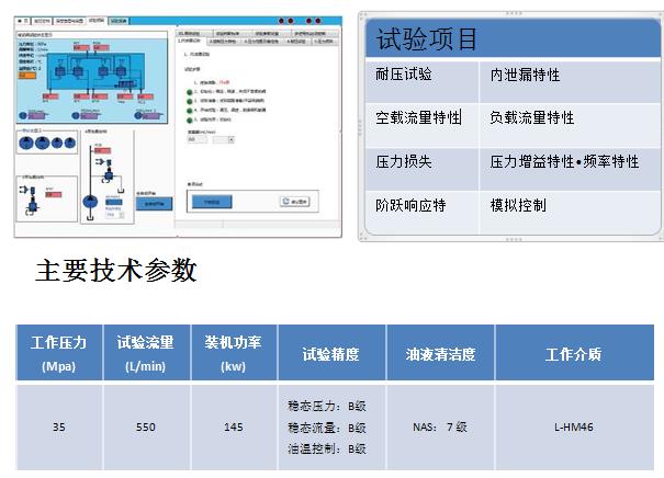 概述 試驗臺適用于比例閥、伺服閥各項出廠性能的測 試試驗。試驗臺采用變頻技術(shù),流量無級調(diào)整,電氣部分 選用工控機、PLC集中控制,NI采集模塊, Labview軟件可視化編程。測試系統(tǒng)選用了專業(yè) 傳感器和儀器,使被測量可以數(shù)字顯示、模擬顯 示。試驗臺可自動完成各項試驗項目,上位信息采集處理,實現(xiàn)數(shù)據(jù)存儲與打印。 技術(shù)特點 •可自動完成試驗項目。 •操作、拆卸簡單。 •試驗數(shù)據(jù)、曲線的自動存儲及選擇打印。 •流量無級調(diào)整:變頻電機或比例泵。 |